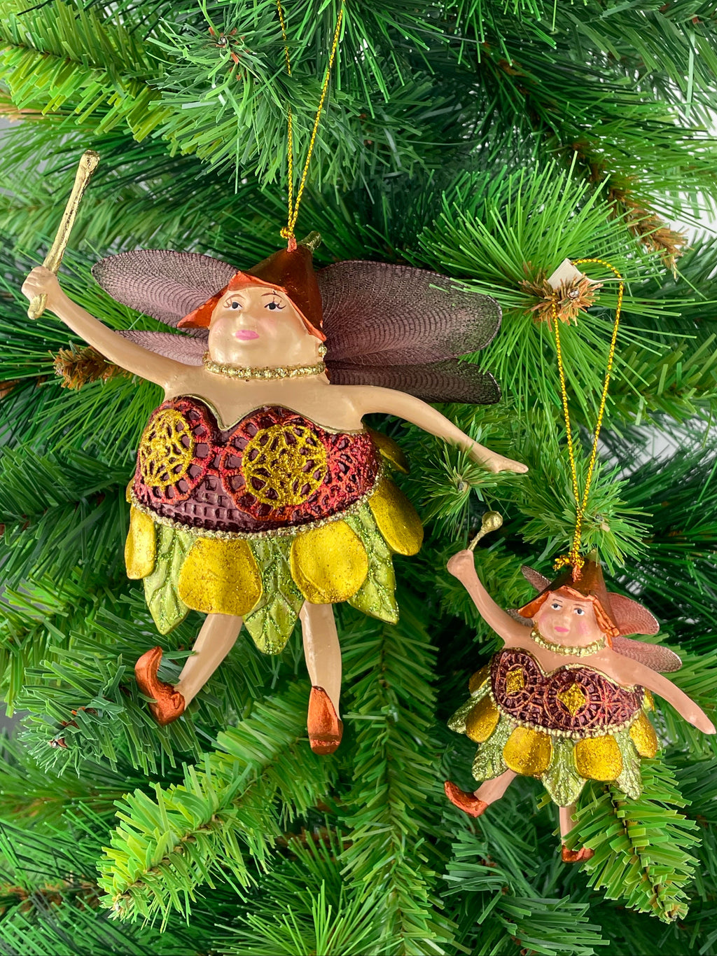 Christbaumschmuck Figur Dicke Elfe mini Fee orientrot-gold-grün Hänger 8cm