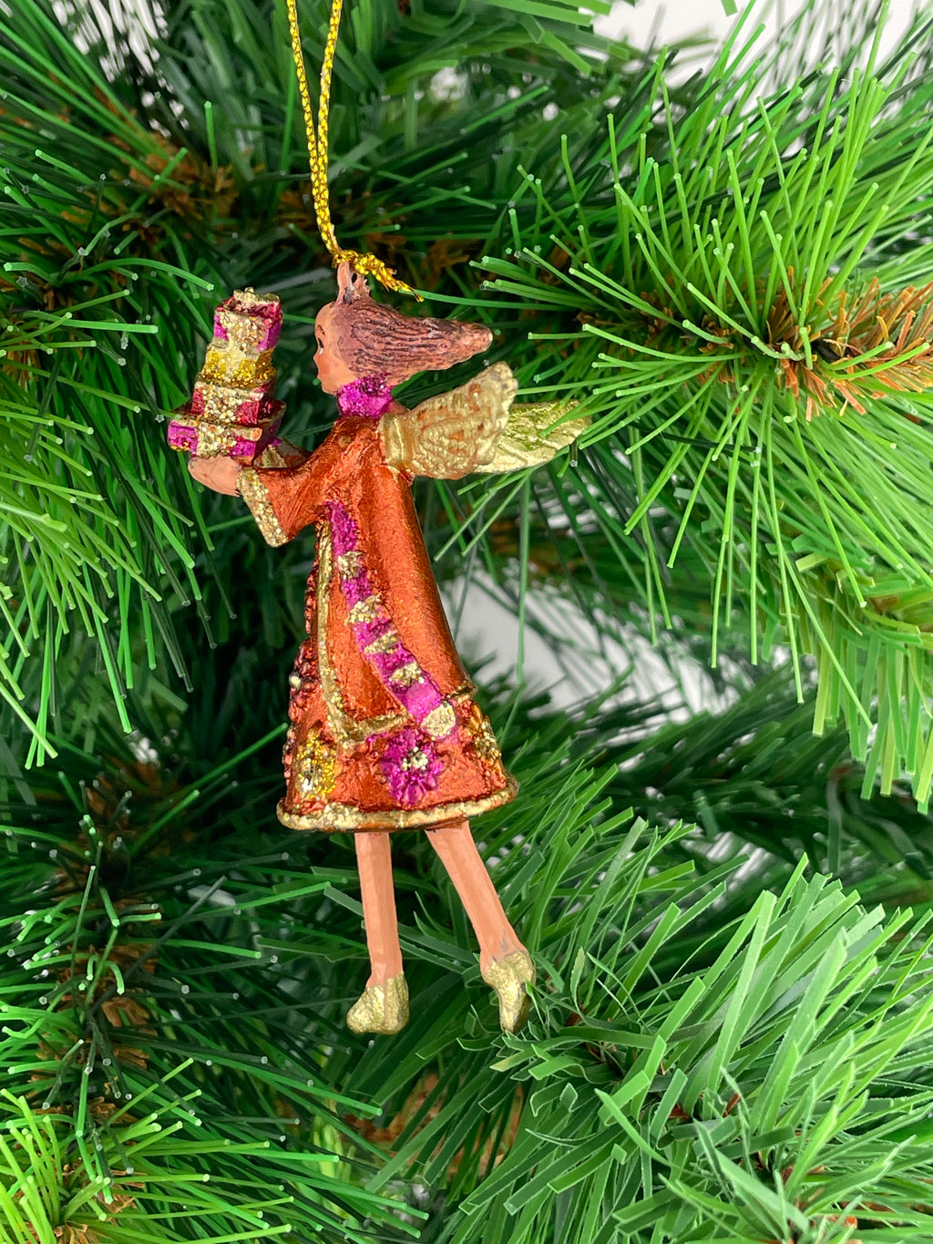 Erleben Sie die zauberhafte Atmosphäre von Weihnachten mit dem kleinen Engel von ecosoul, der in einem eleganten, kupferfarbenen Kleid gekrönt ist und liebevoll mit Geschenken beladen ist. Diese exquisite Figur, gefertigt aus hochwertigem Kunstharz, besticht durch ihre metallischen Reflexe und die zarte Blütenmuster, die eine geheimnisvolle und dennoch warme Ausstrahlung verleihen. Mit einer Größe von 8 cm Länge und 4 cm Breite sowie einem leichten Gewicht von 15g ist diese hängende Dekoration ein echtes Highlight für Ihren Weihnachtsbaum oder als stimmungsvolle Ergänzung in Ihrem Zuhause. Die Kombination aus Form, Farbe und liebevollem Design macht diesen Engel zu einem unverzichtbaren Begleiter für die festliche Zeit.