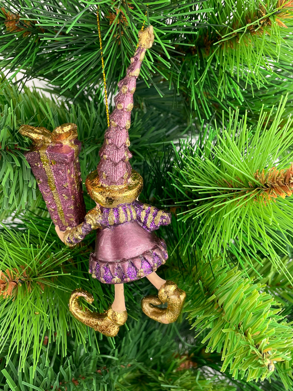 Erleben Sie die festliche Freude mit dem kleinen Weihnachtsmann-Elf, der als charmante Wichtel-Figur in Ihrem Zuhause nicht fehlen darf. Diese exquisite, aus hochwertigem Kunstharz gefertigte Figur, besticht durch ihre Detailverliebtheit in den Farben Lila Flieder und Gold, gepaart mit einem liebevoll applizierten, gepunkteten Muster. Mit einer stattlichen Höhe von 13 cm und einer Breite von 6 cm sowie einem Gewicht von 37 g, ist diese Figur von "ecosoul" aus Dänemark, ein echtes Highlight für Ihre festliche Dekoration. Als Einzelstück konzipiert, zeichnet sich der Wichtel durch seine hängende und metallische Verzierung aus, was ihn zu einem vielseitigen Schmuckstück für jeden Anlass macht. Ob als vorweihnachtlicher Besucher in Ihrer Fensterdekoration oder als liebevolles Geschenk – dieser wiederverwendbare und langlebige Freund wird zweifellos Herzen erfreuen und festliche Stimmung verbreiten.
