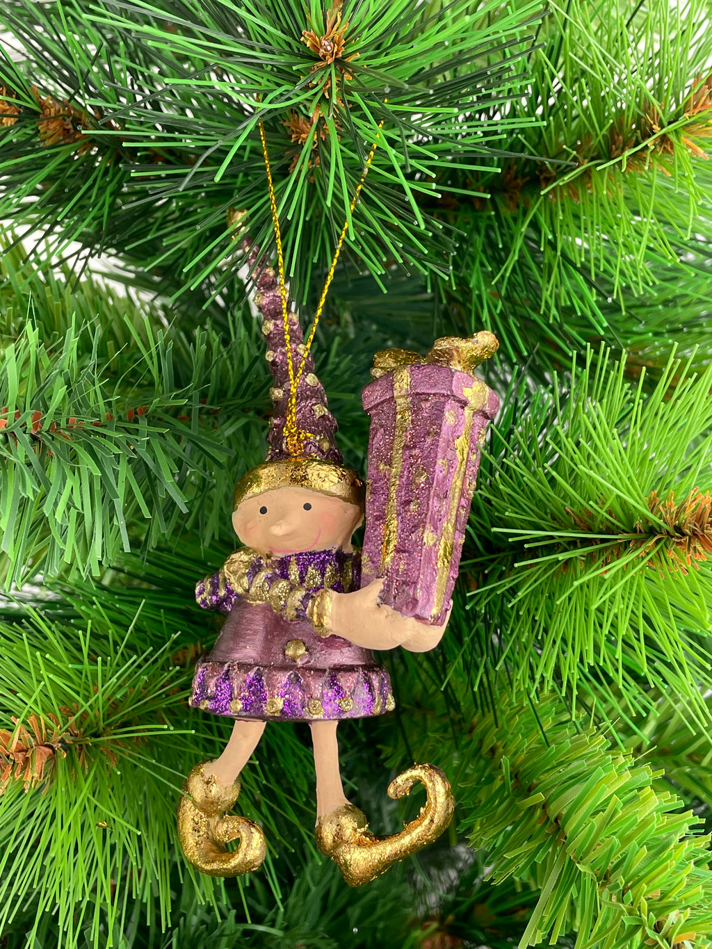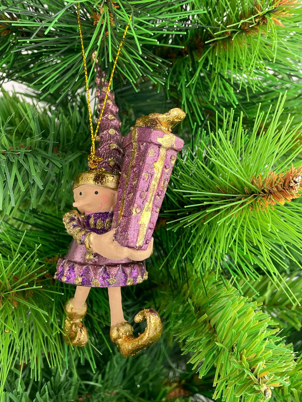 Kleiner Weihnachtsmann Elf Wichtel Gabenträger Weihnachten Deko Anhänger Christbaumschmuck 14 cm lila-flieder Gold mit Geschenk