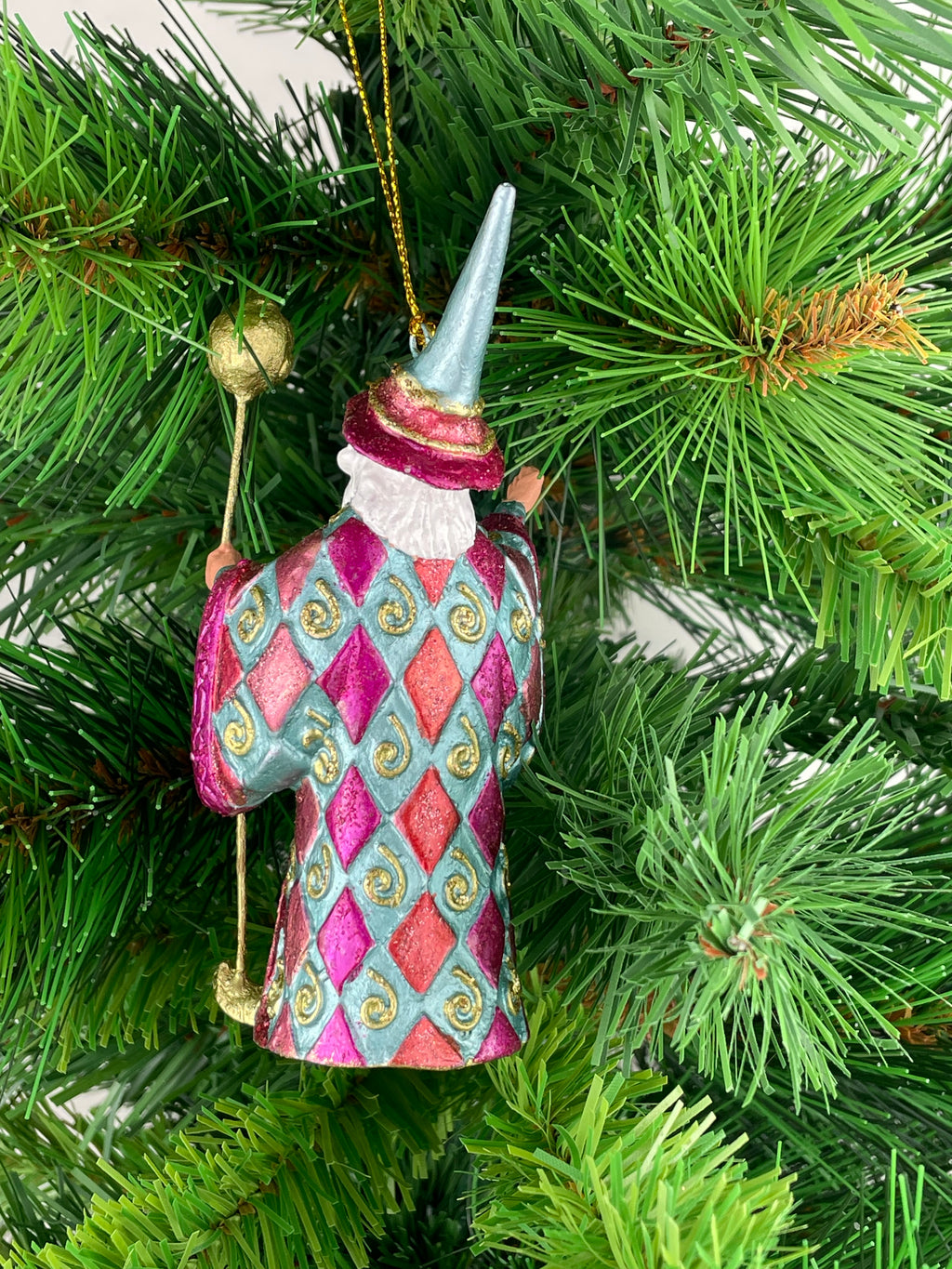 Verschönern Sie Ihren Raum mit dem mittelgroßen Baumschmuck-Zauberer von ecosoul, der in einem kunstvollen türkis-pink-rosa-goldenen Design erstrahlt und Ihre Fantasie anregt. Die 12 cm lange Figur mit ihrem langen Mantel und dem Zauberstab ist aus hochwertigem Kunstharz gefertigt und besticht durch ihre metallischen Reflexe sowie die liebevollen Rautenmuster, die ihr einen einzigartigen Charme verleihen. Mit einer Breite von 5 cm und einem Gewicht von 57 g ist diese hängende Dekoration ideal für jeden Anlass. Sie ist wiederverwendbar und verleiht als zeitloses Accessoire Ihrer Christbaum- oder Feiertagsdekoration einen Hauch von Magie. Lassen Sie sich von diesem zauberhaften Wesen in eine Welt voller Phantasie entführen.