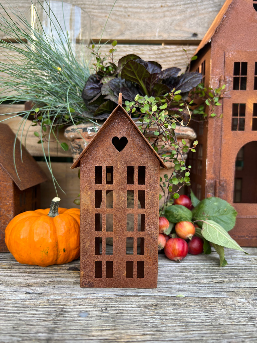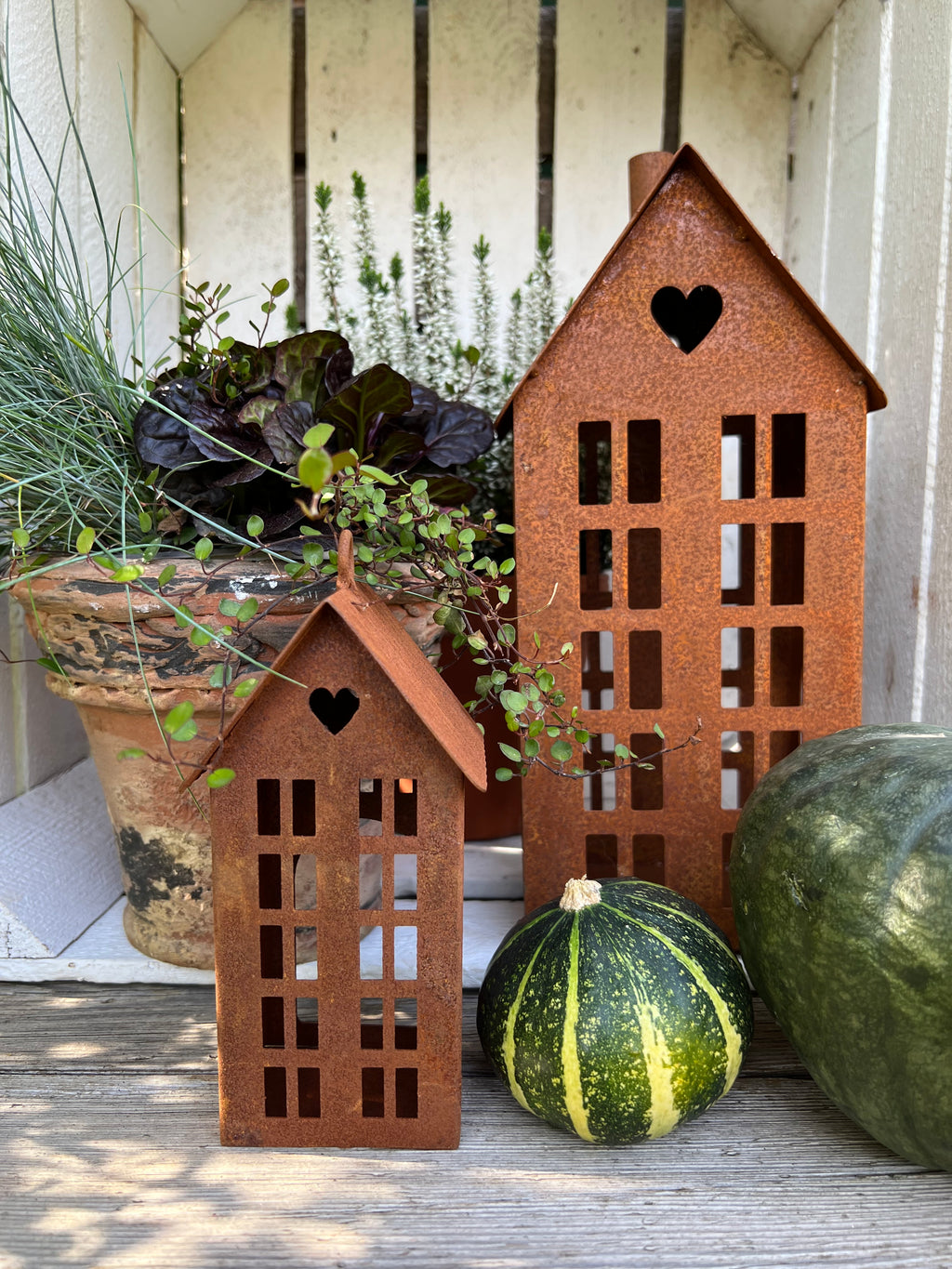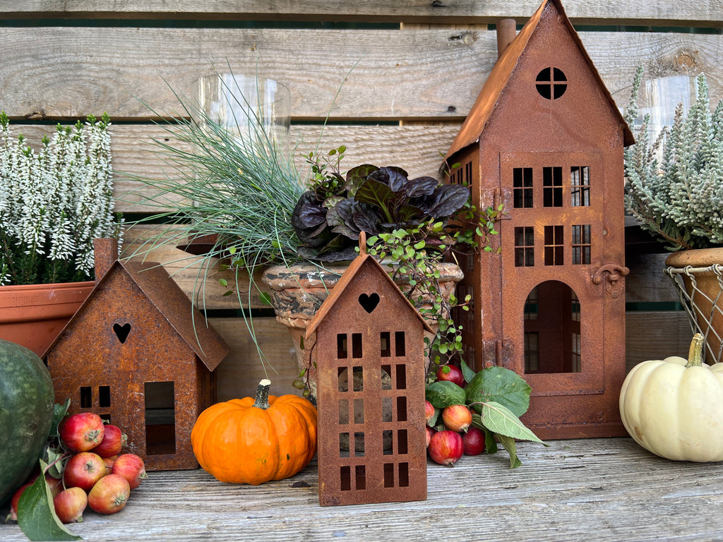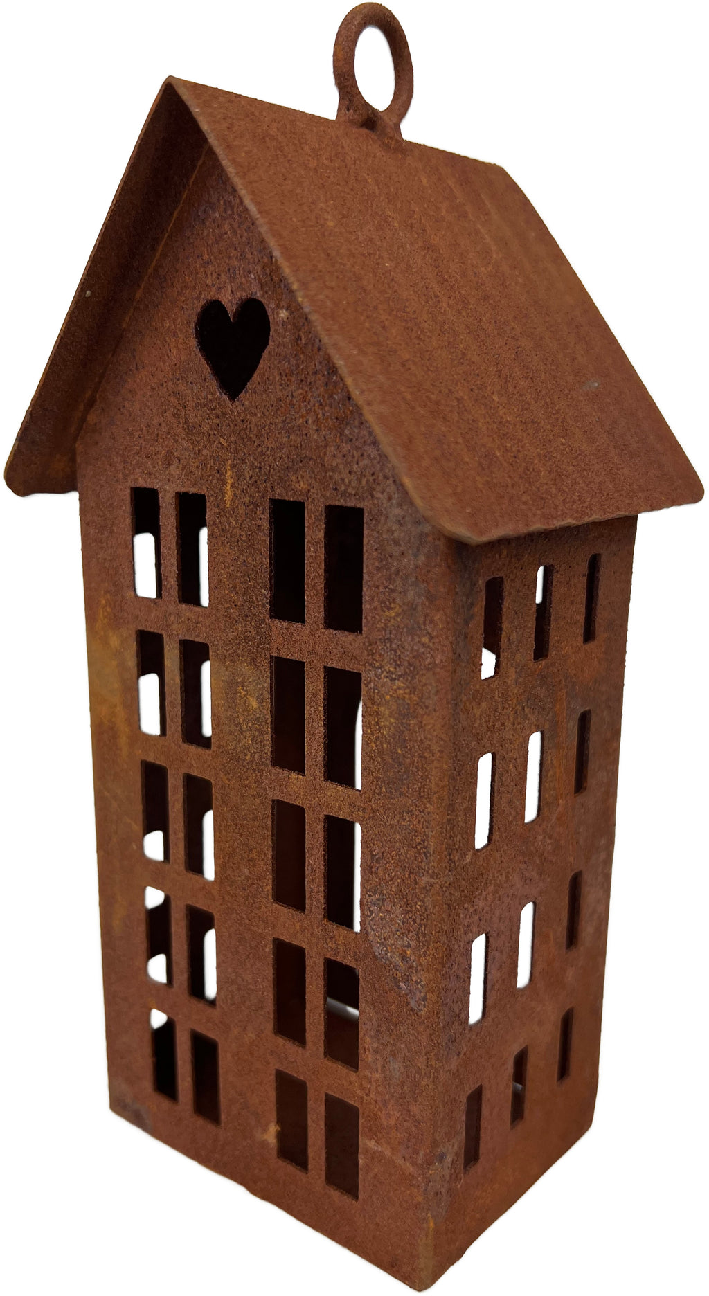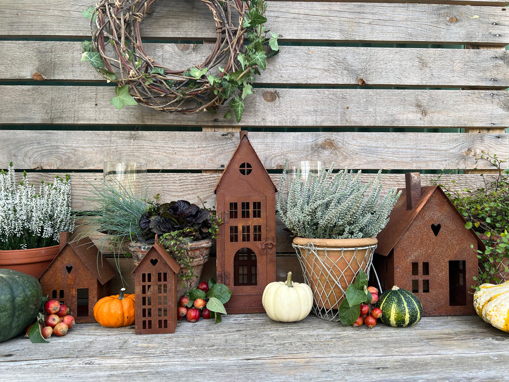 Verleihen Sie Ihrem Zuhause oder Garten mit dem kleinen, rustikalen Häuschen aus Metall mit Edelrost-Finish eine charmante Note. Dieses liebevoll gestaltete Deko-Stück von ecosoul, hergestellt in Österreich, zeigt ein niedliches Haus mit Herz und Fenstern, perfekt für jeden Anlass. Mit seiner stabilen Konstruktion, die frostsicher und langlebig ist, sowie seiner wetterfesten Eigenschaft, eignet es sich ideal für den Einsatz auf der Fensterbank, im Blumenbeet, auf der Veranda oder auf dem Balkon. Das 17cm hohe Haus mit einer Breite von 8cm und einem Gewicht von 190g ist für den Innen- und Außenbereich geeignet und erfordert keinerlei Pflege. Sein Design, ein Haus mit Fenstern, einem Herz und einem Ring zum Aufhängen, bringt einen Hauch von Eleganz und Willkommen in jeden Raum.