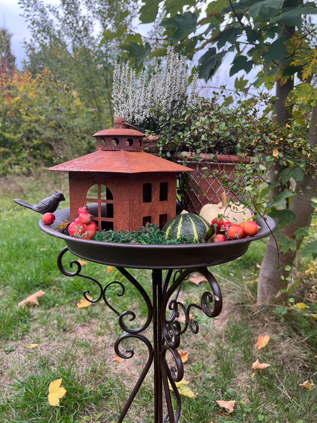 Dieses sechseckige Vogelhaus / Dekohaus vereint Funktionalität und dekorativen Charme für den Garten. Das Häuschen aus verrostetem Metall misst 22 cm in der Höhe und 18 cm in der Breite (Breite von dem Boden des Hauses) und kann flexibel gestellt oder dank integriertem Ring elegant aufgehängt werden. Es setzt mit seiner natürlichen Rostoptik stilvolle Akzente und bietet zugleich Lebensraum für Vögel oder - bei Verwendung als Windlicht - Lichtquelle für Ihren Außenbereich. Ideal für Gartenliebhaber, die eine langlebige und zugleich ästhetische Dekoration suchen.