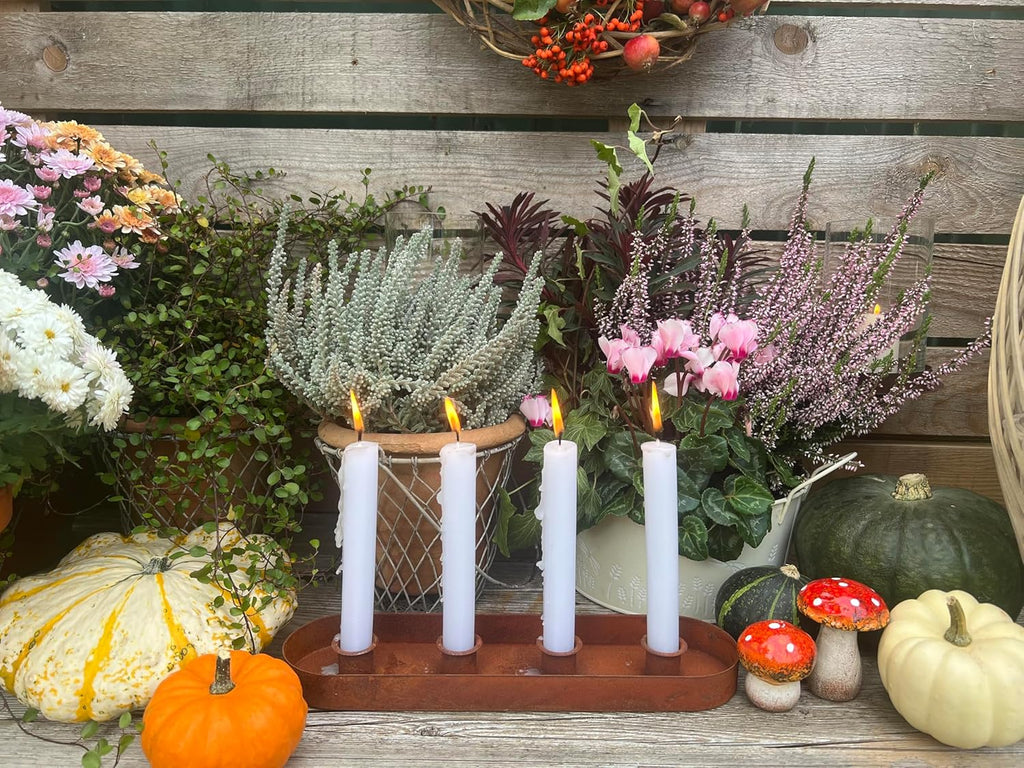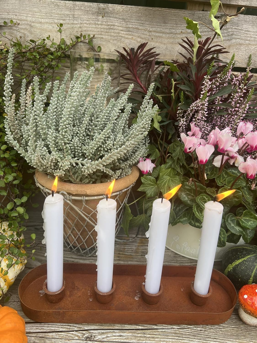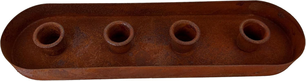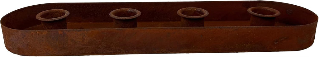 Elegante Kerzenhalter-Schale aus Metall mit charaktervollem Rostfinish – perfekt für vier Stabkerzen. Das großzügige Format von 30 x 8 cm bietet stabilen Halt und schützt Ihre Möbel durch die integrierte Wachsschutz-Funktion. Der vintage-shabby-rustikal Stil verleiht Ihrem Zuhause zeitlose Advents- und Weihnachtsdeko mit authentischem Charakter. Ideal für festliche Tischdekorationen und ganzjährige Raumgestaltung.