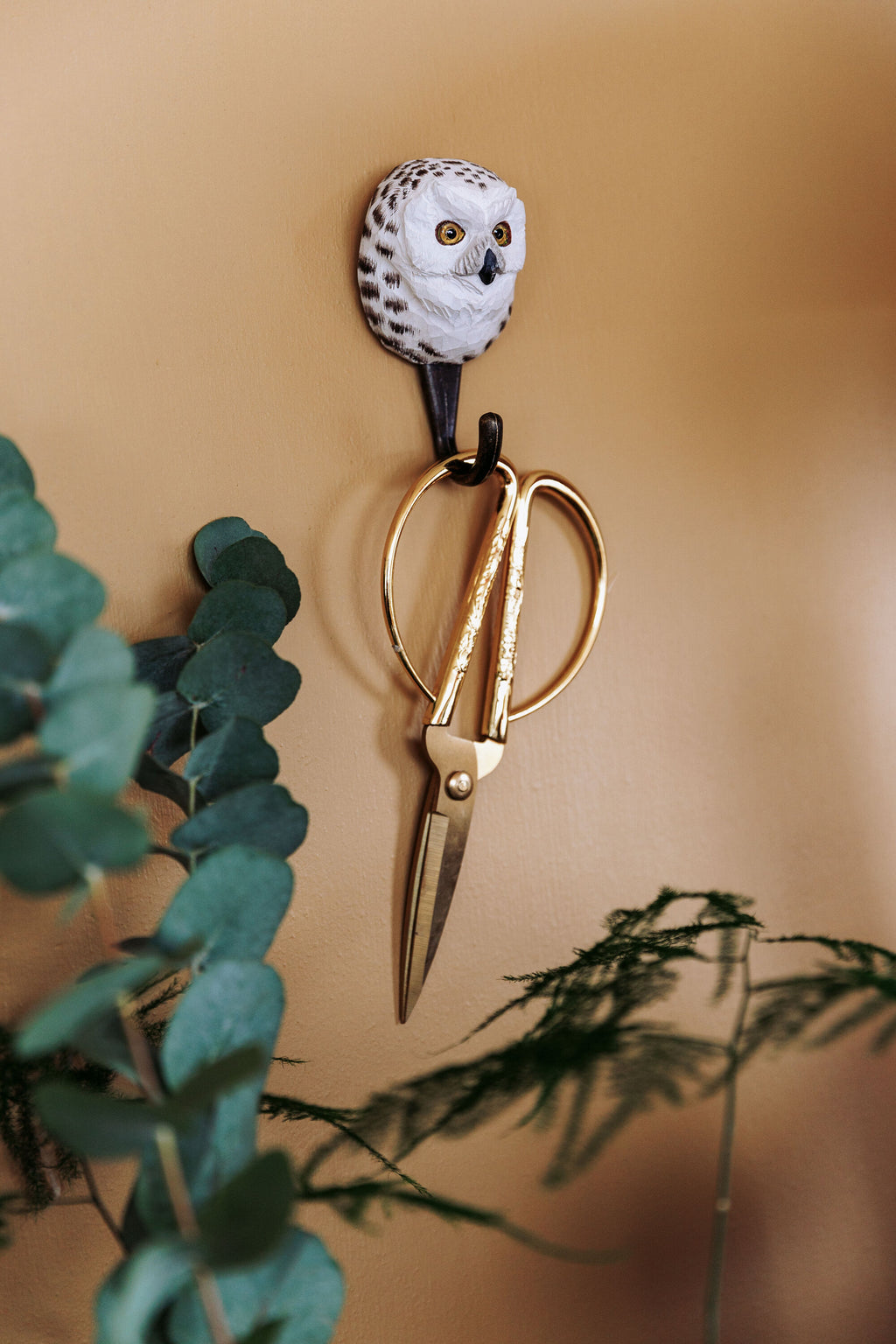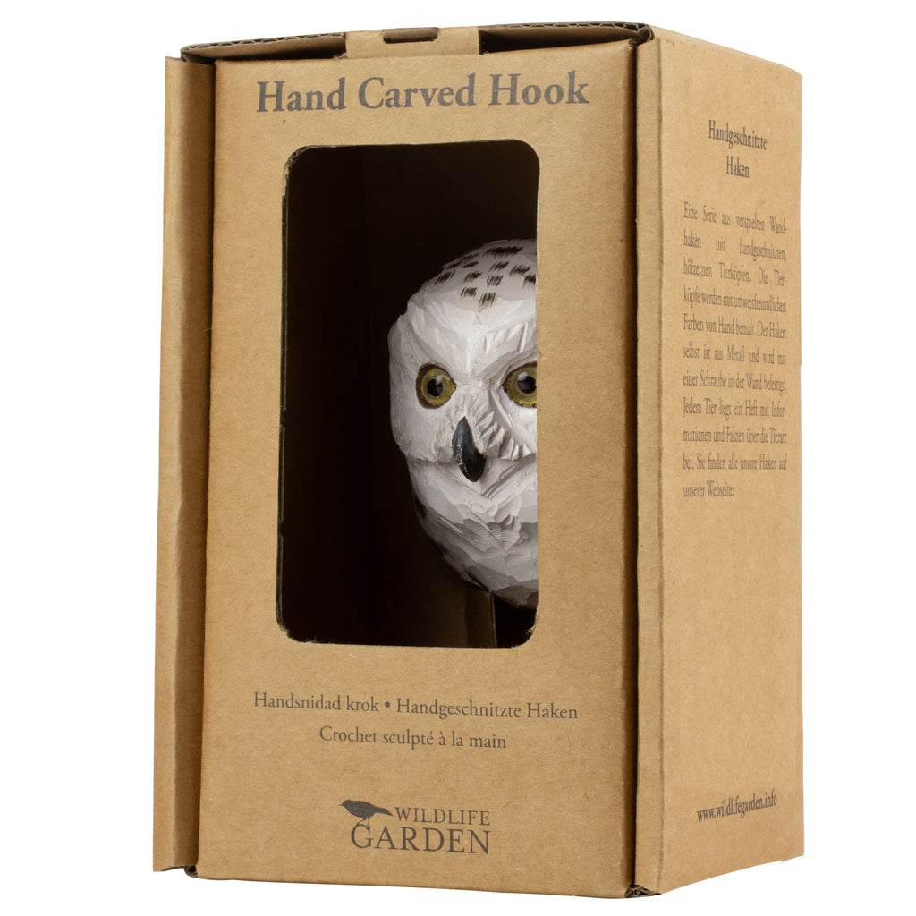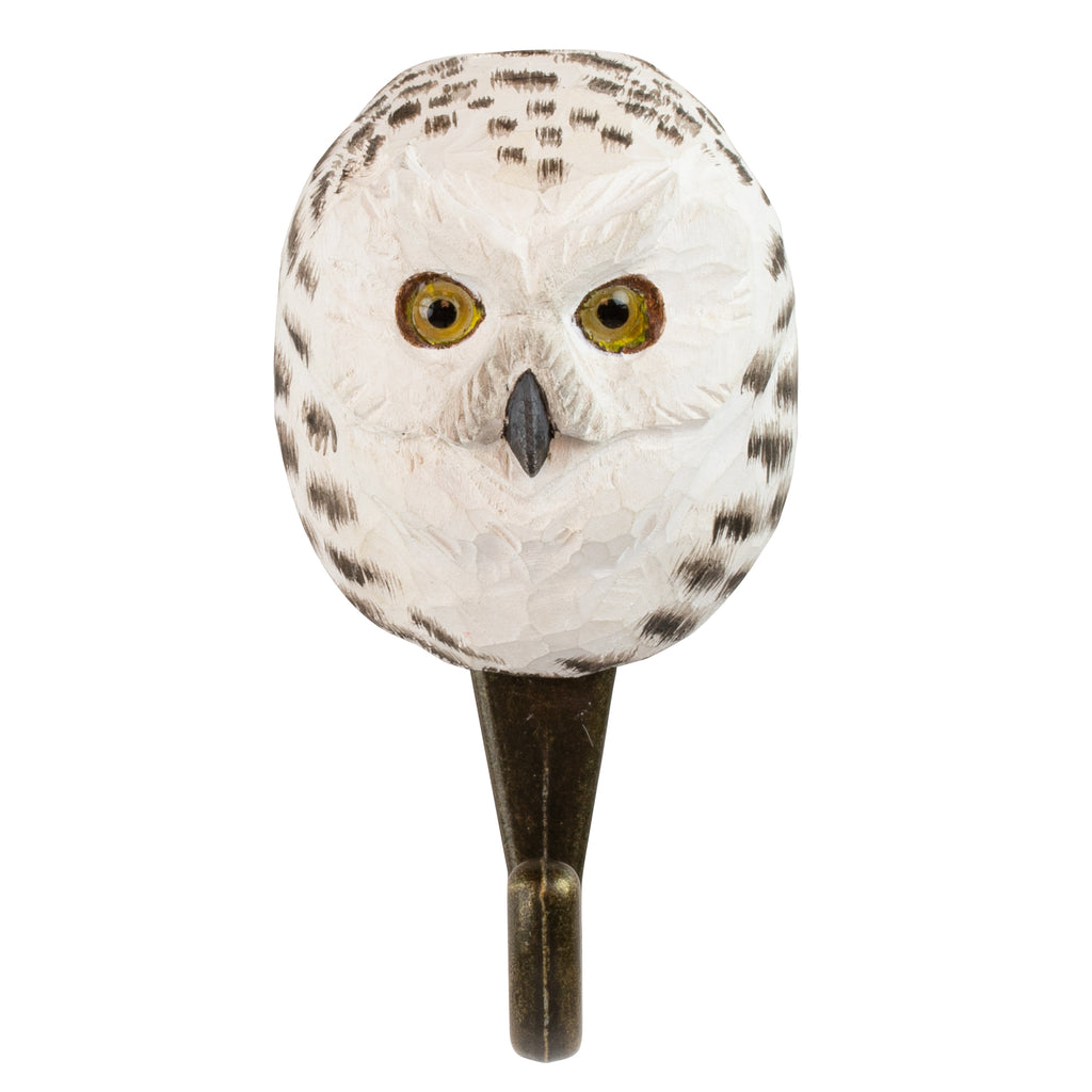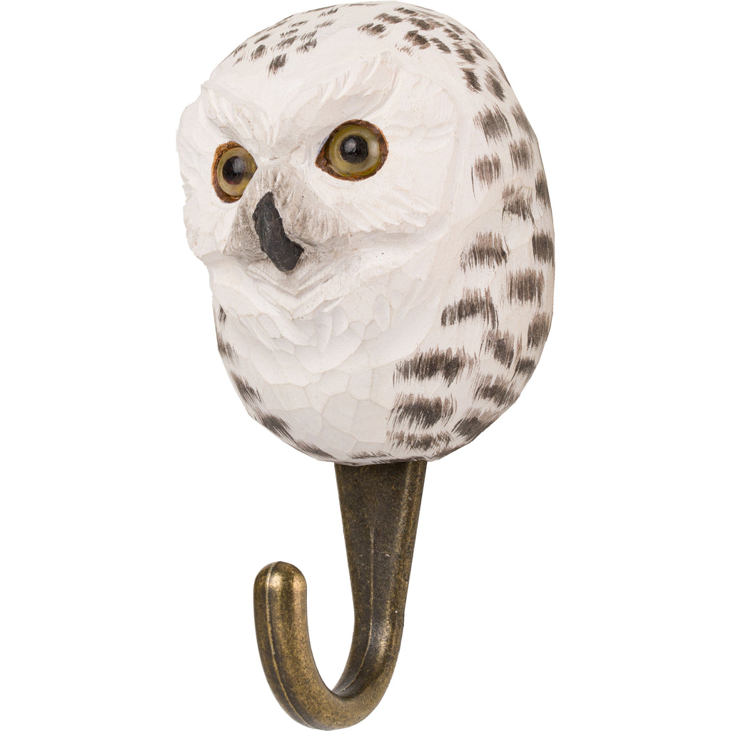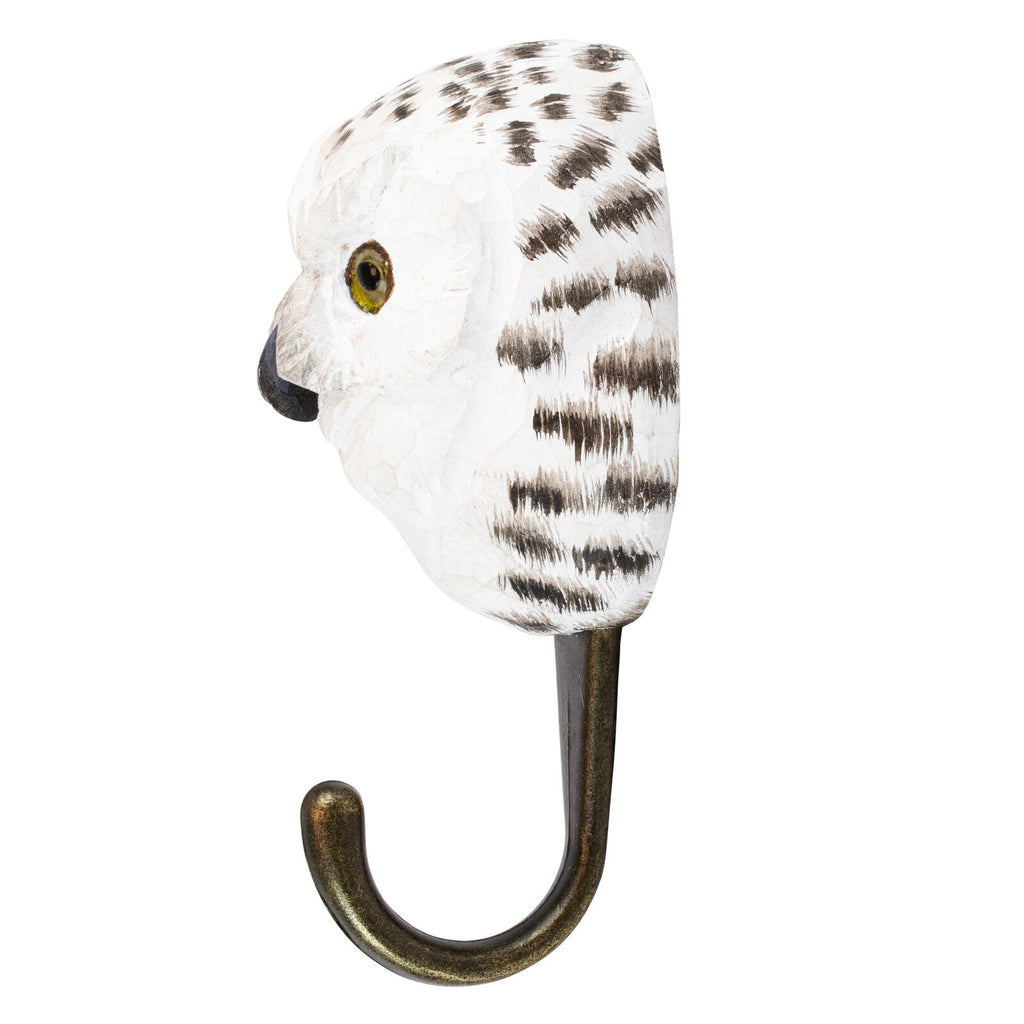 KLEIDERHAKEN SCHNEEEULE Garderobe Wandhaken massiv Landhaus Vintage handgeschnitzt und handbemalt Holz und Metall-Haken 11cm hoch
