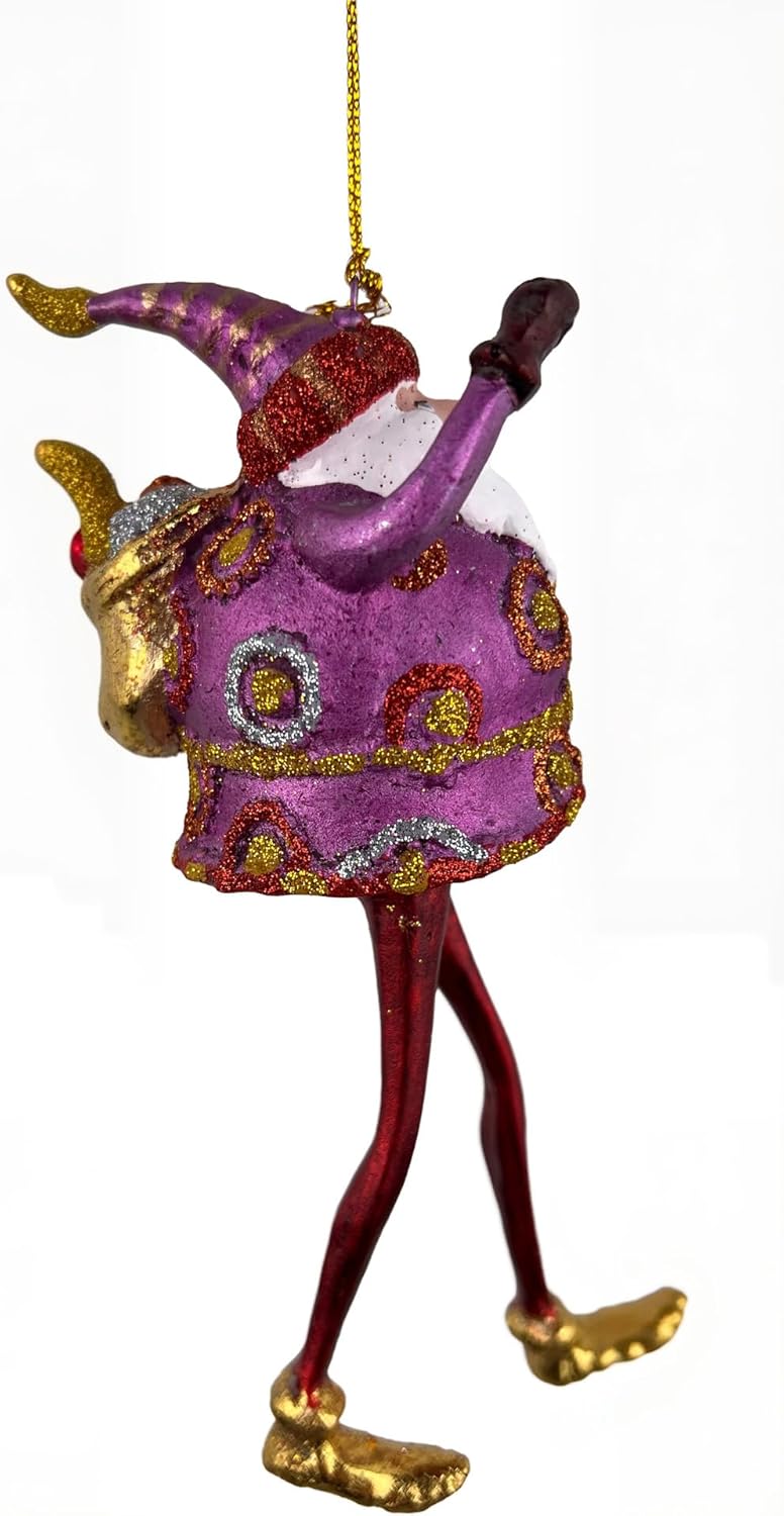 Verleihen Sie Ihrem Weihnachtsbaum einen Hauch von festlicher Eleganz mit diesem bezaubernden Christbaumschmuck. Die detailreiche Figur zeigt einen fröhlichen Weihnachtsmann, der ein Geschenksäckchen trägt. Mit seinem prächtigen pink-goldenen Oberteil, verziert mit kunstvollen Spiralmustern und Glitzer, bringt diese 16 cm große Anhängerfigur festlichen Glanz in Ihr Zuhause. Der rote Unterkörper und die goldenen Akzente verleihen dem Ornament eine verspielte Note. Jedes Stück ist sorgfältig gefertigt und wird mit einer goldenen Kordel zum einfachen Aufhängen geliefert. Diese einzigartige Dekoration ist nicht nur ein Blickfang an Ihrem Weihnachtsbaum, sondern auch ein wundervolles Geschenk für Sammler von besonderen Weihnachtsdekorationen. Aus hochwertigem Material hergestellt, ist dieser Baumschmuck ein zeitloses Stück, das Jahr für Jahr die Weihnachtsfreude in Ihr Zuhause bringt.