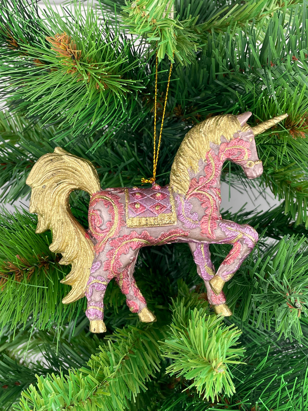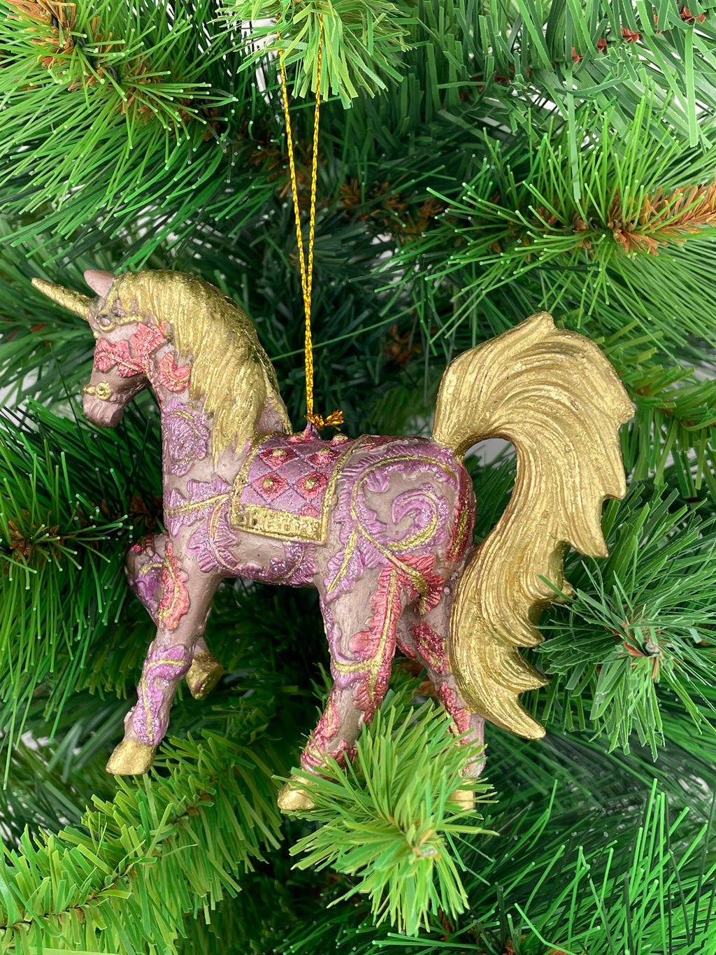 Christbaumschmuck Figur "Einhorn" Hänger flieder-lila-gold Hänger 15 cm
