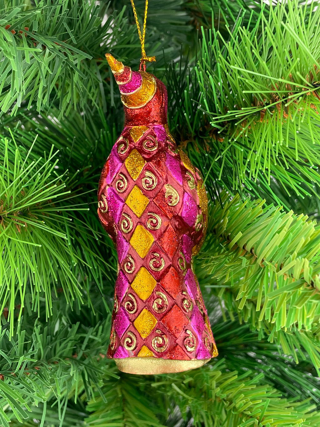 Jedes Produkt wurde handbemalt und aus Kunstharz hergestellt. Ein richtiger Blickfang! Leichter Metallic-Effekt, goldenes Schlaufenbändchen zum Aufhängen.