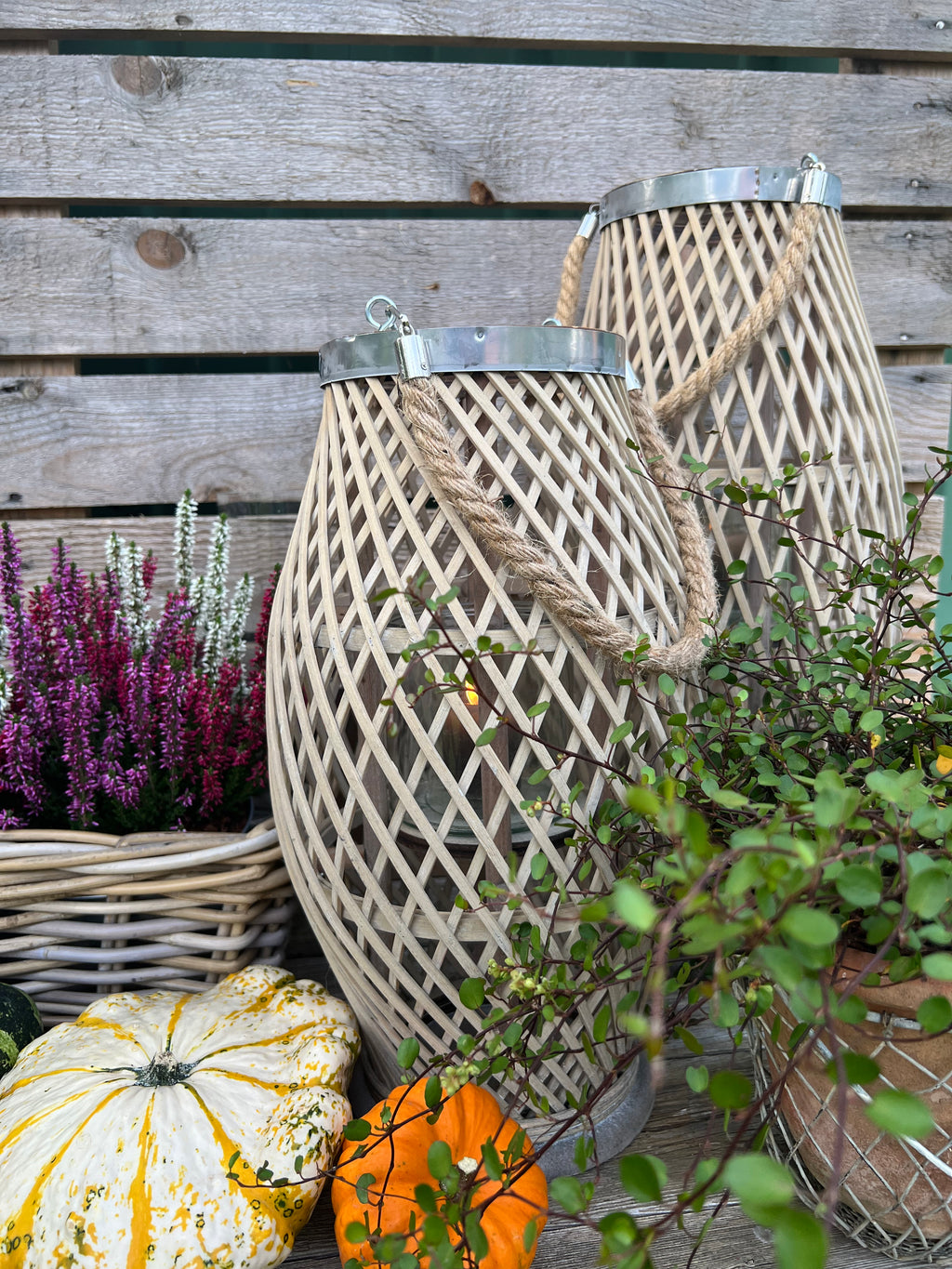 Diese Bambuslaterne vereint natürliche Eleganz mit funktionaler Vielseitigkeit. Aus robustem Bambus gefertigt, sorgt sie für eine warme Atmosphäre im Garten oder Innenbereich. Das Glas schützt die Kerze zuverlässig vor Wind, während die praktische Kordel den Laternen ein einfaches Tragen und Aufhängen ermöglicht. Erhältlich in drei verschiedenen Größen, passt sie sich flexibel Ihren individuellen Bedürfnissen an und bietet eine stilvolle Lösung für stimmungsvolle Beleuchtung.