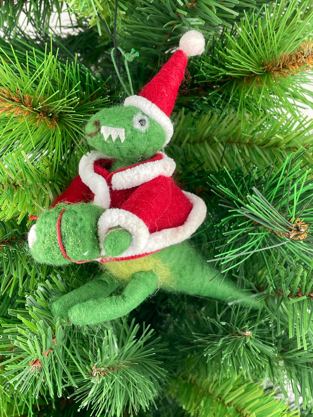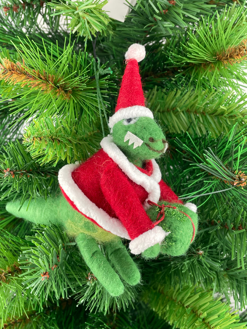 Verleihen Sie Ihrem Weihnachtsbaum mit dem entzückenden Baumschmuck aus Filz von ecosoul eine persönliche Note. Diese charmante Dinosaurier-Figur, gehalten in einem ansprechenden Grün, Rot und Weiß, ist ein ideales Geschenk für Liebhaber von außergewöhnlichem Festtagsdekor. Die Figur ist mit einer Weihnachtsmütze und Jacke versehen, misst 15x15 cm und wiegt lediglich 15 g, was sie zu einem leichten und dennoch robusten Schmuckstück macht. Dank der bruchsicheren und hängenden Gestaltung lässt sich der filzige Freund unkompliziert an Ihrem Weihnachtsbaum befestigen und verbreitet festliche Stimmung. Die Kreativität und Liebe zum Detail machen diese Einzelfigur zu einem besonderen Hingucker, der jedes Weihnachtsfest verschönert und auch in den folgenden Jahren wiederverwendet werden kann.